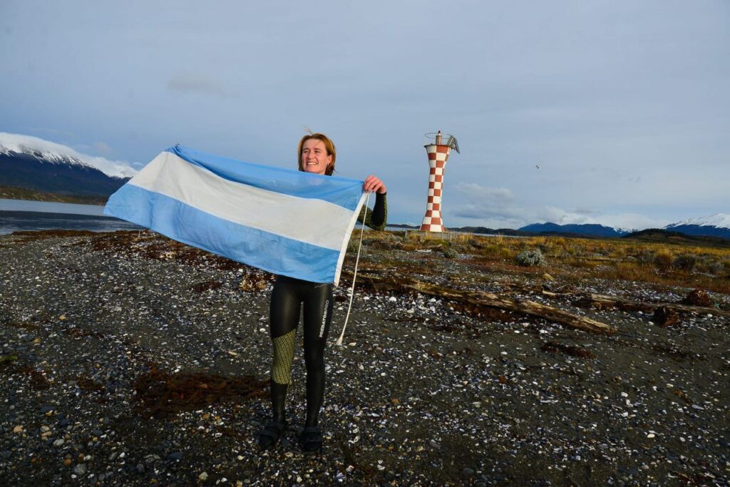 La Municipalidad de Ushuaia, a través de la Secretaría de Turismo, acompañó el cruce a nado del Canal Beagle realizado este lunes por la atleta española e ingeniera náutica Begoña Alday, quien unió Cabo Peña (Argentina) con el Paso McKinlay (Chile), nadando un kilómetro y medio en las gélidas aguas del canal fueguino.