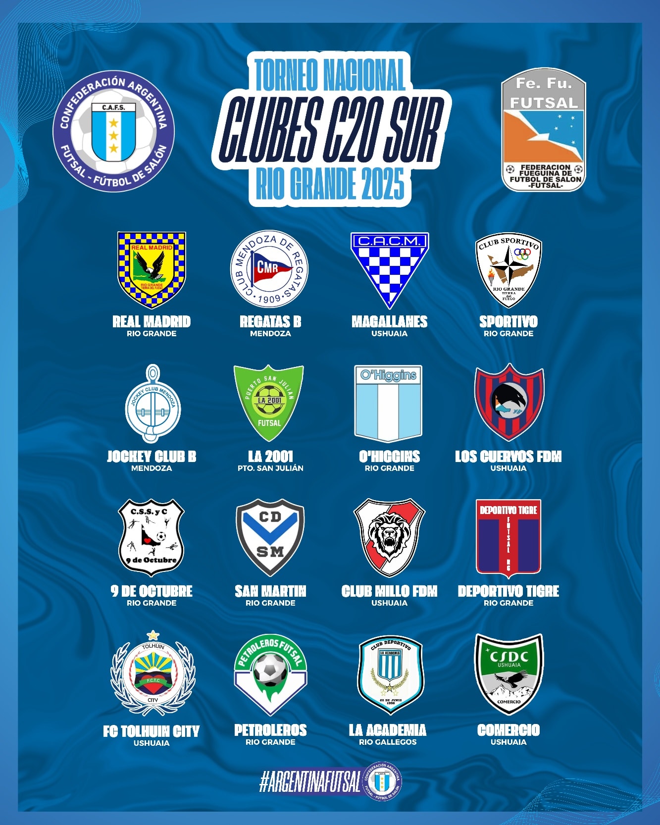 La ciudad de Río Grande se prepara para recibir el Torneo Nacional de Clubes C20 Sur, una de las competencias más relevantes del calendario del futsal argentino. El evento se desarrollará del 17 al 22 de agosto, con la participación confirmada de 16 equipos representantes de Río Grande, Ushuaia, Mendoza, Puerto San Julián y Río Gallegos.